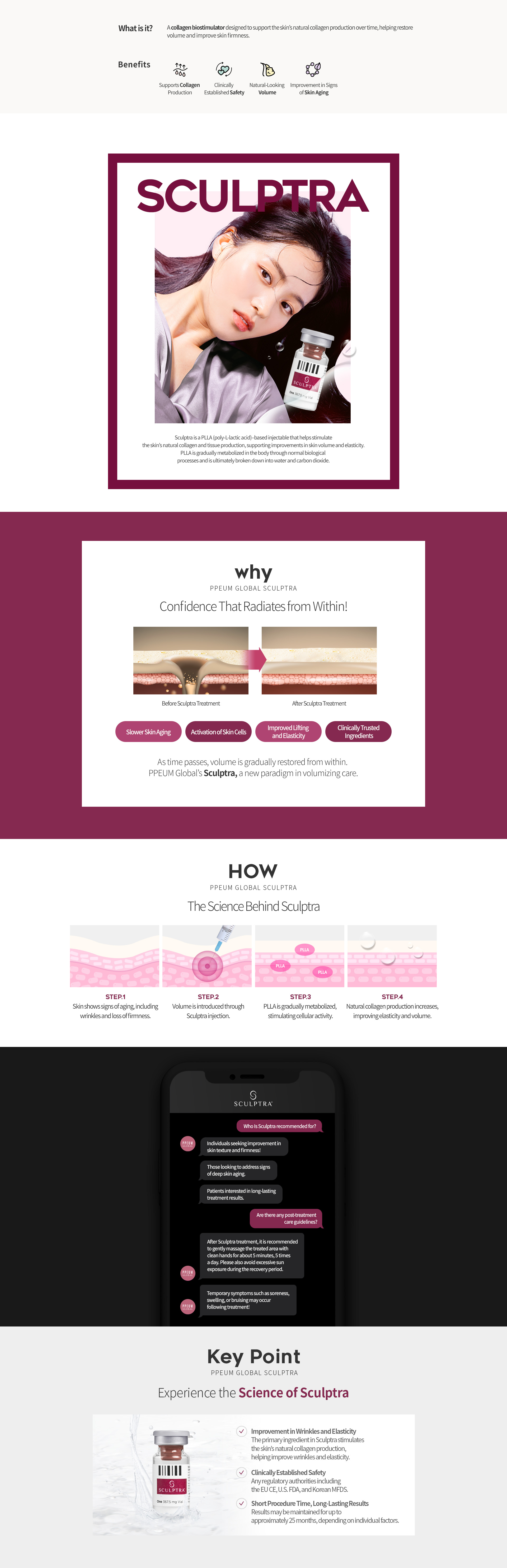 Contains PLLA (poly-L-lactic acid) and has been approved for safety by regulatory authorities, including the Korean MFDS, EU CE certification, and the U.S. FDA.