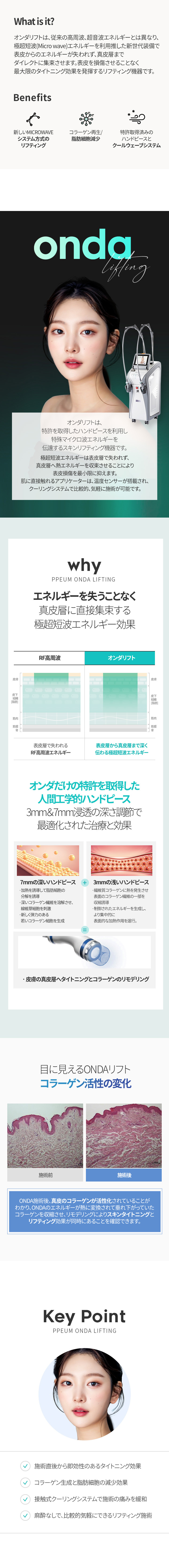 - 従来の高周波、超音波を利用したレーザーリフティング機器とは異なり、極超短波マイクロウェーブエネルギーを利用し、